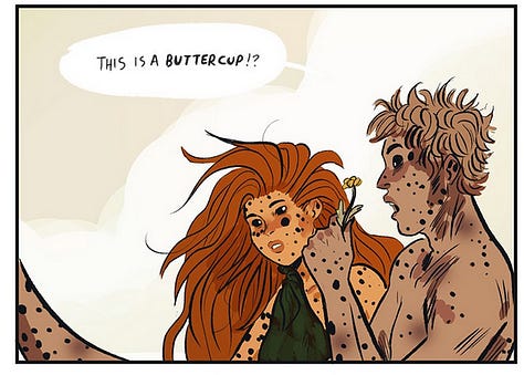 After the sad goodbye of episode 89, and the continued betrayal of episode 90, I wanted to grant some relief to the reader in the form of a travelling break. A montage of our gang walking through the rupturing spring, a peek into their new dynamic. I think it’s important to have these moments of quiet and respite, small discussions, small squimishes, little wins; we need to know what the new baseline is as a reader. What is at risk here? What are they defending? What happiness will they fight for?
