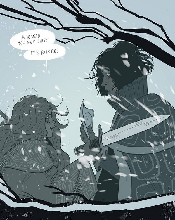 You can read episode 87 of ill fame, which includes mushroom gnomes stealing drawings and our lads tricking a giant many-eyed boar onto thick ice, here.