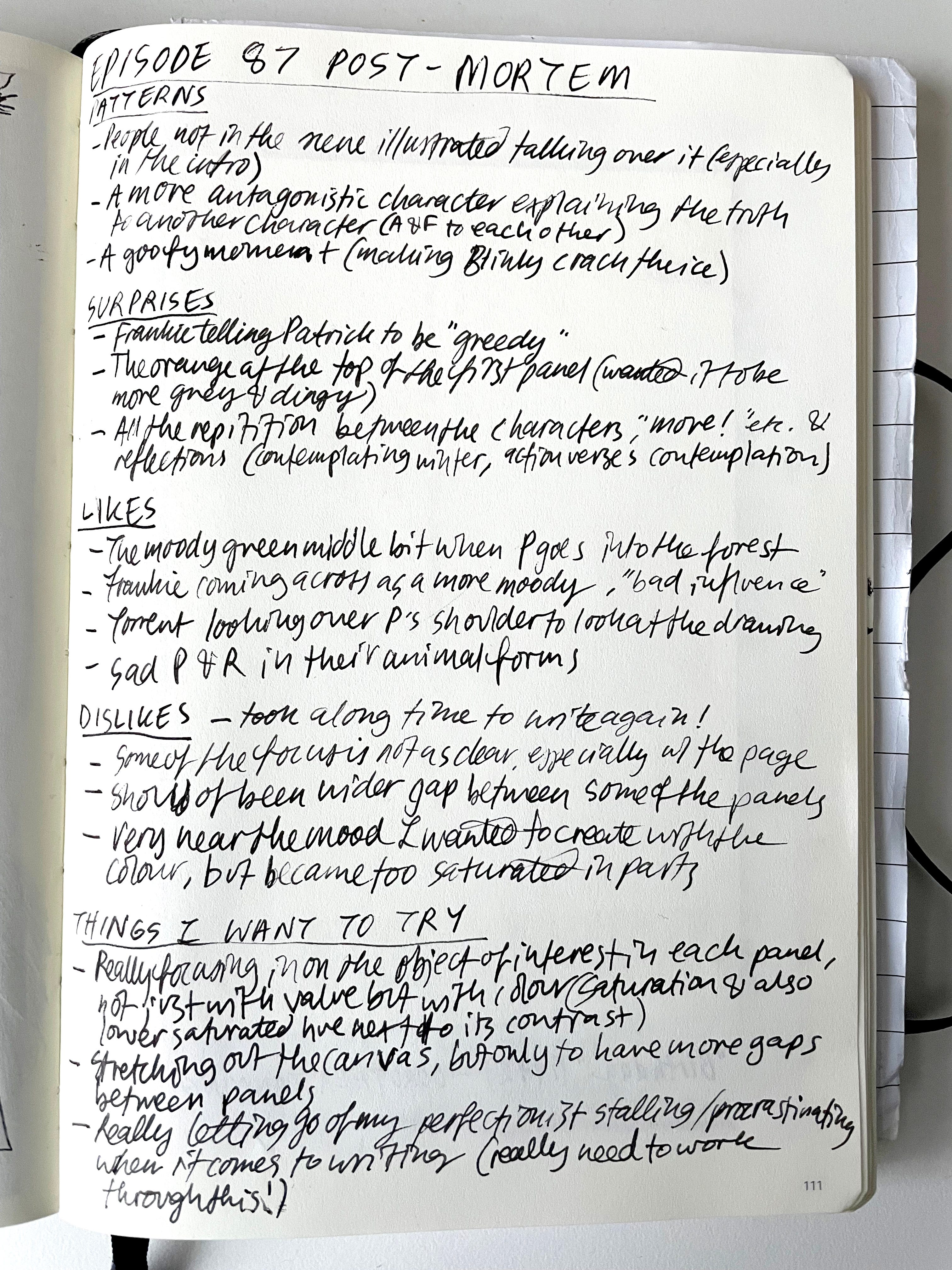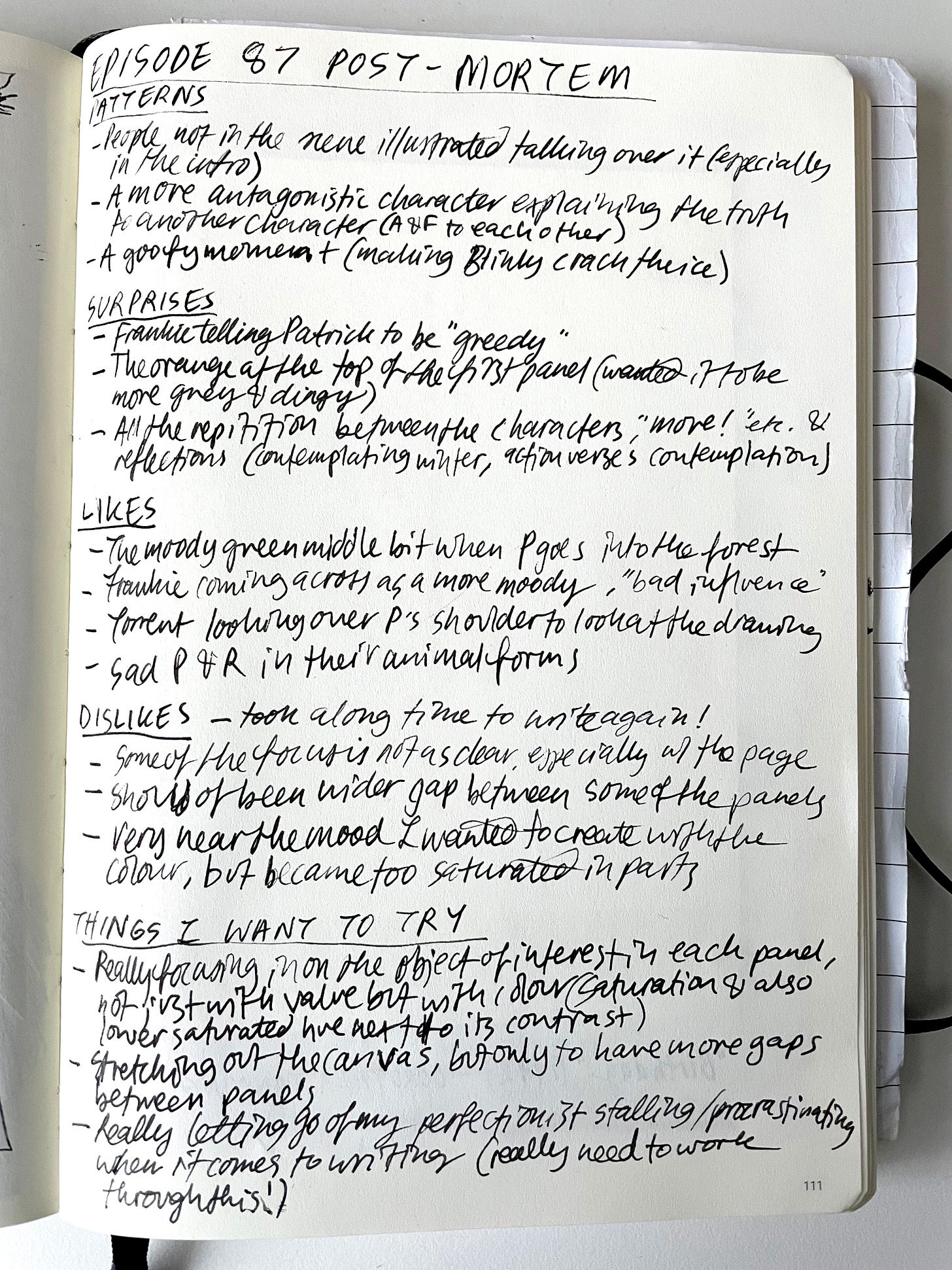 There’s a practice I like to do after each episode is finished and after any illustration I make and that is perform it’s post mortem.